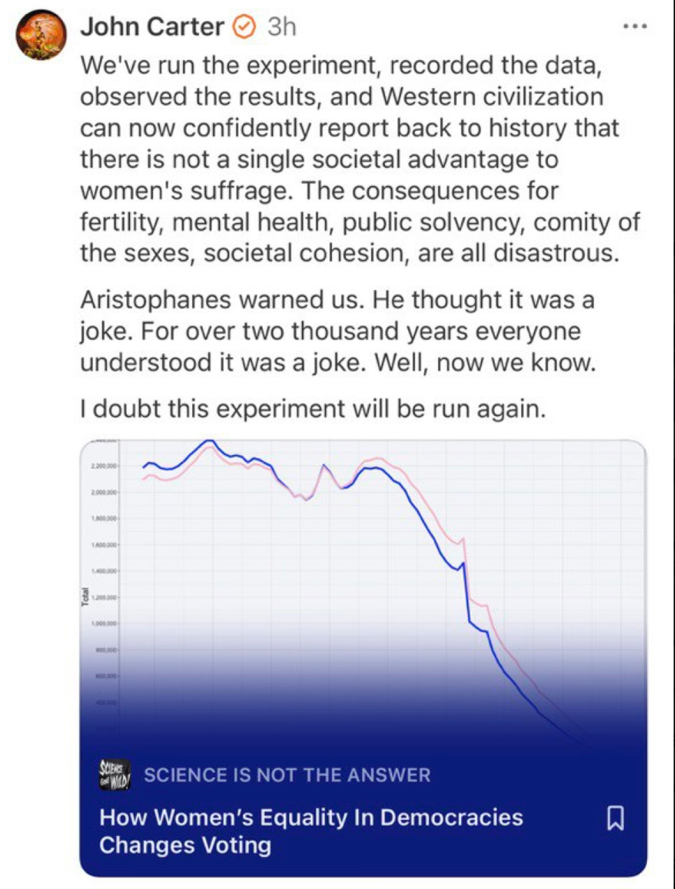 So… ladies… you want to be treated like men? Good luck to ya. You’re going to die alone and your cats will piss on your dead body before they even think of eating it.